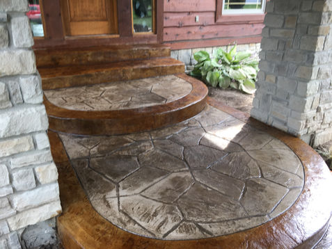 We specialize in applying decorative finishes to concrete surfaces. This includes colored concrete, stamped finishes, acid staining and overlays.
